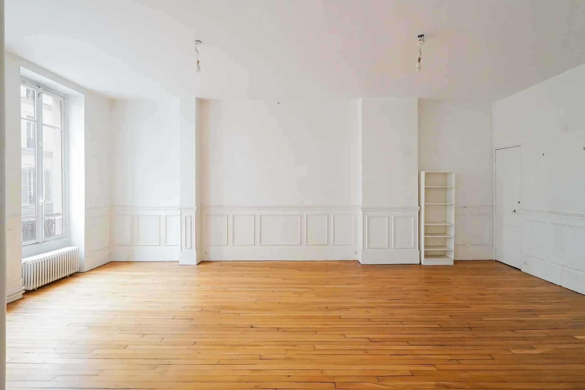 En lisière du Marais, dans un des plus joli immeuble de la rue chargé d'histoire, à l'étage noble avec ascenseur, élégant appartement de 148,25m² loi Carrez avec 3.25m d'hauteur sous plafond. Ce lieu d'exception est composé d'une réception de 85m², une cuisine, deux chambres et une salle de bains. Parquet d'origine, orienté ouest