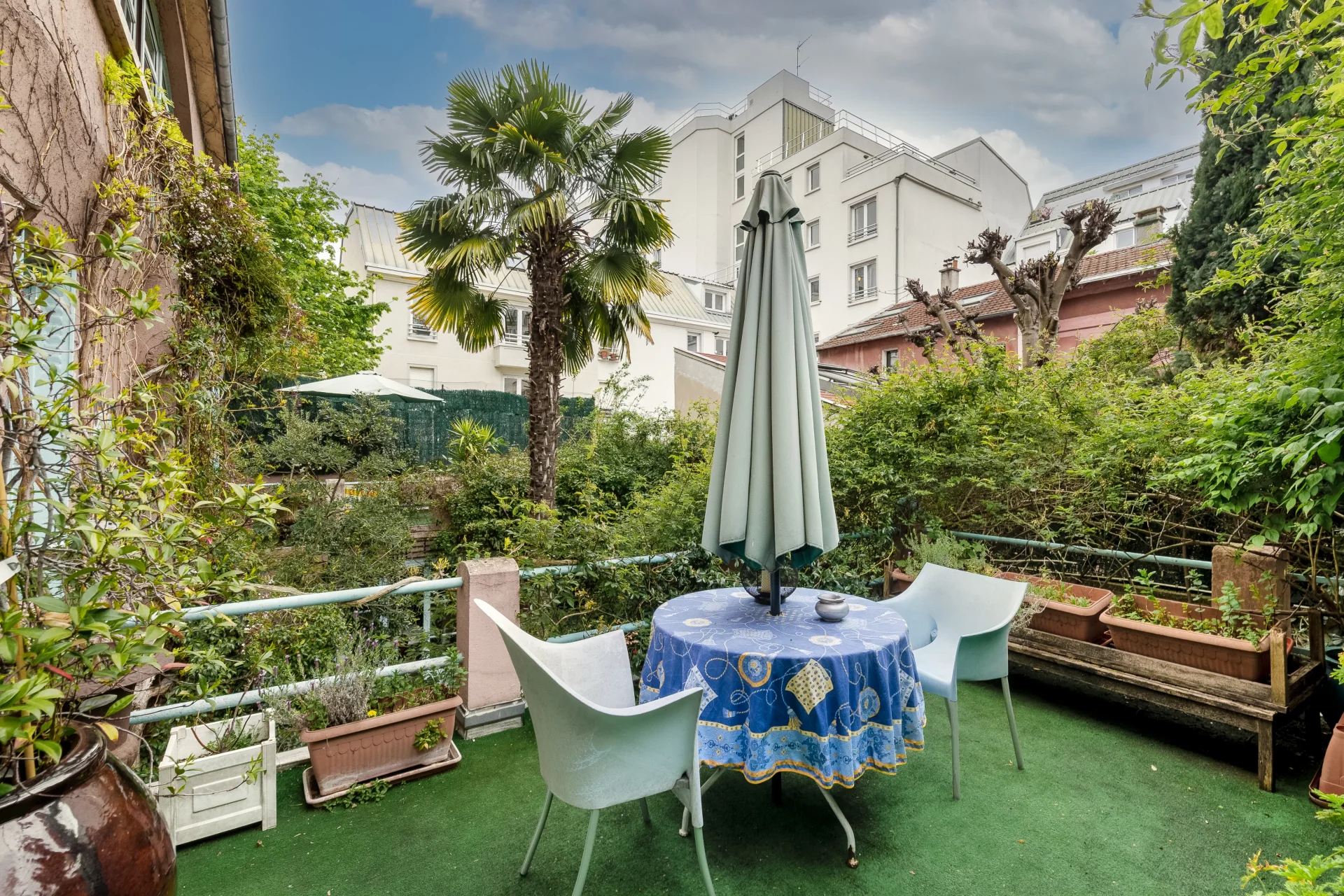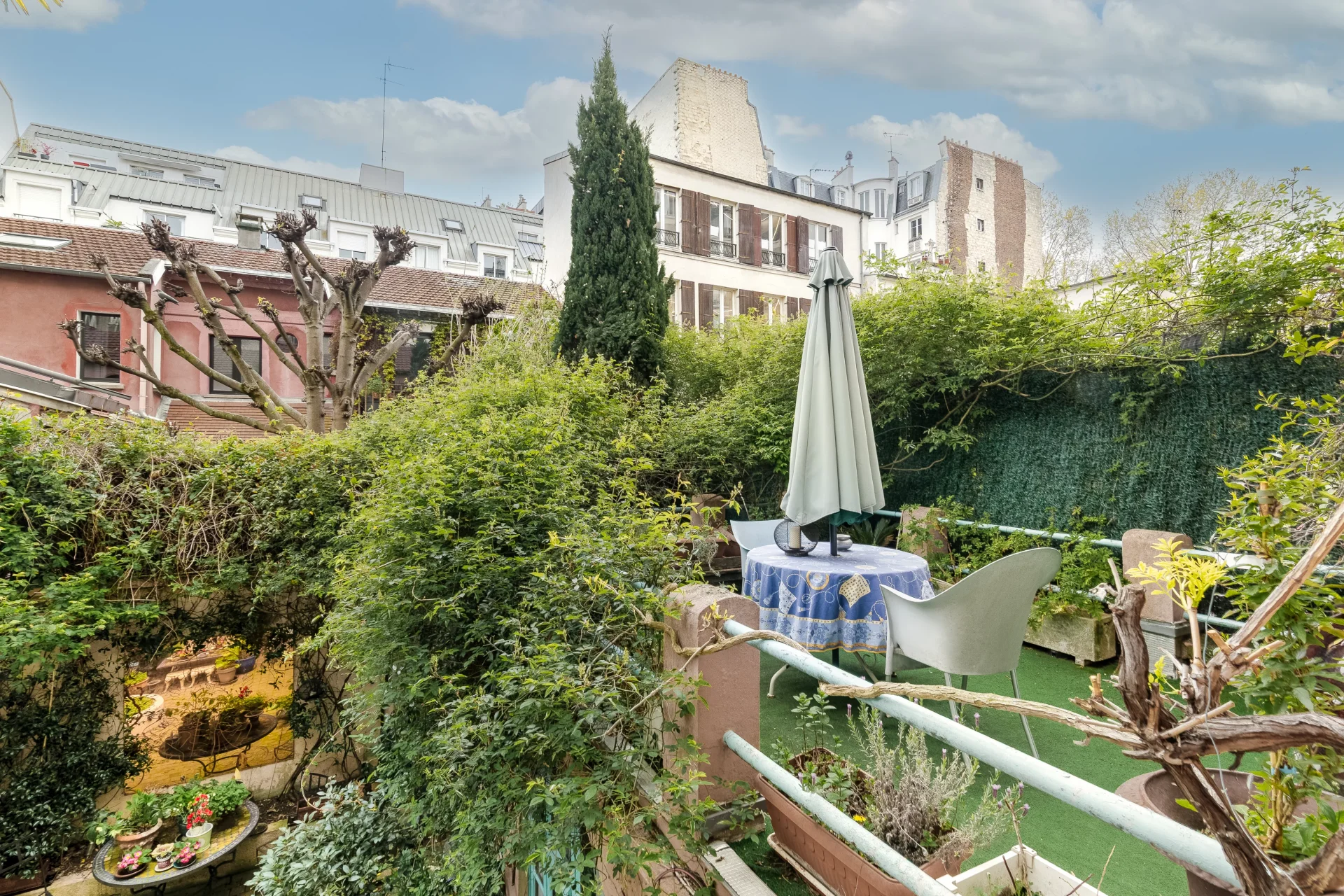 Organisée sur trois niveaux, elle s’ouvre sur une terrasse arborée et ensoleillée de 80m², véritable écrin de verdure.