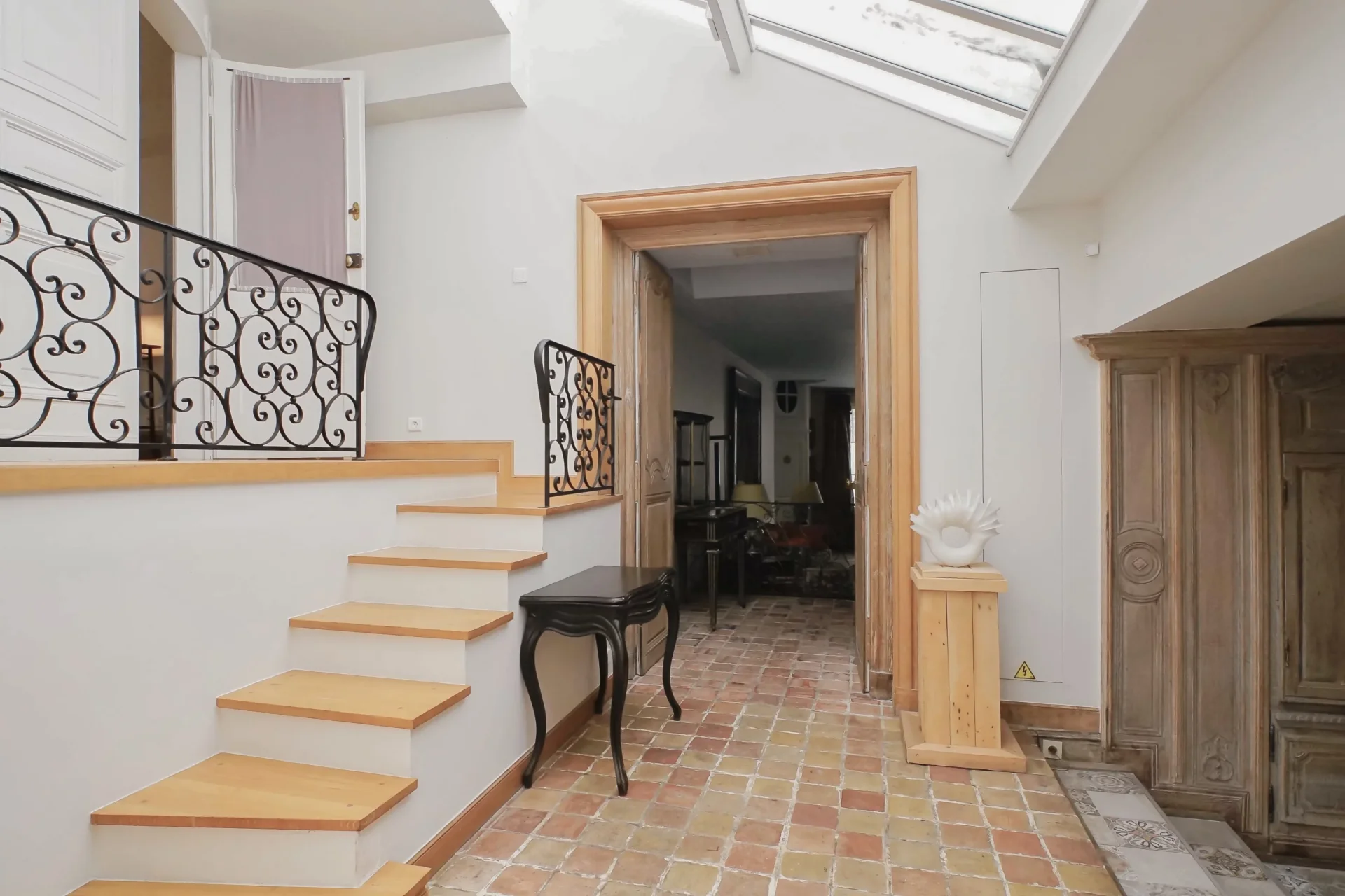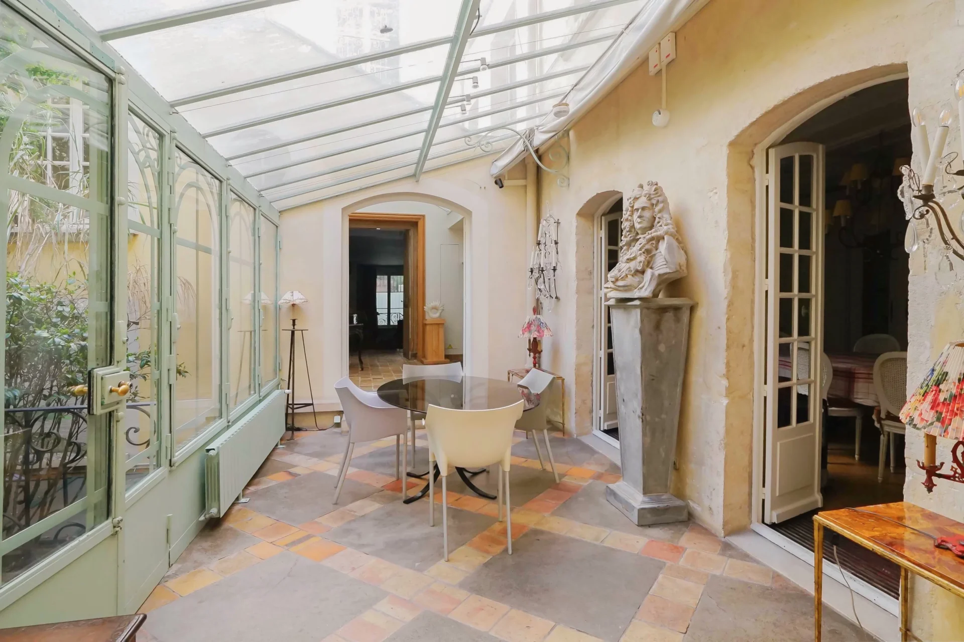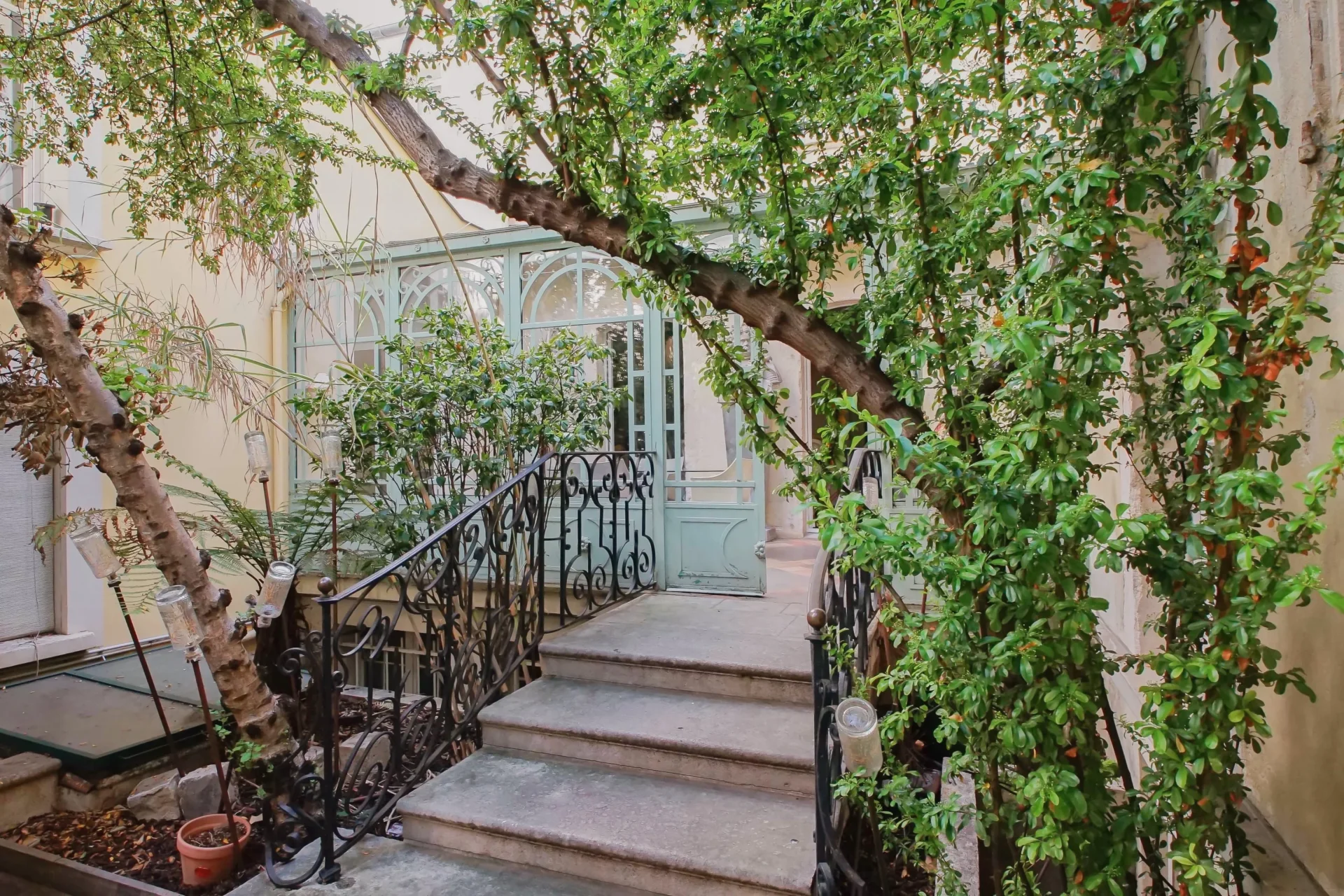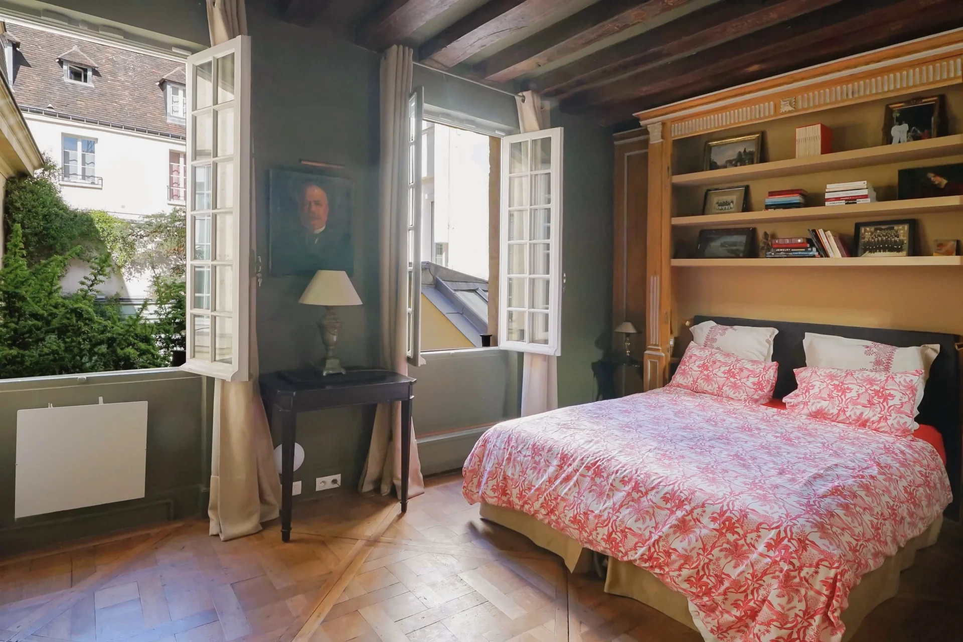Au fond d’une impasse discrète, à deux pas de la Place des Vosges, se dévoile une propriété privée d’une rareté absolue, dissimulée derrière une porte cochère d’origine.
