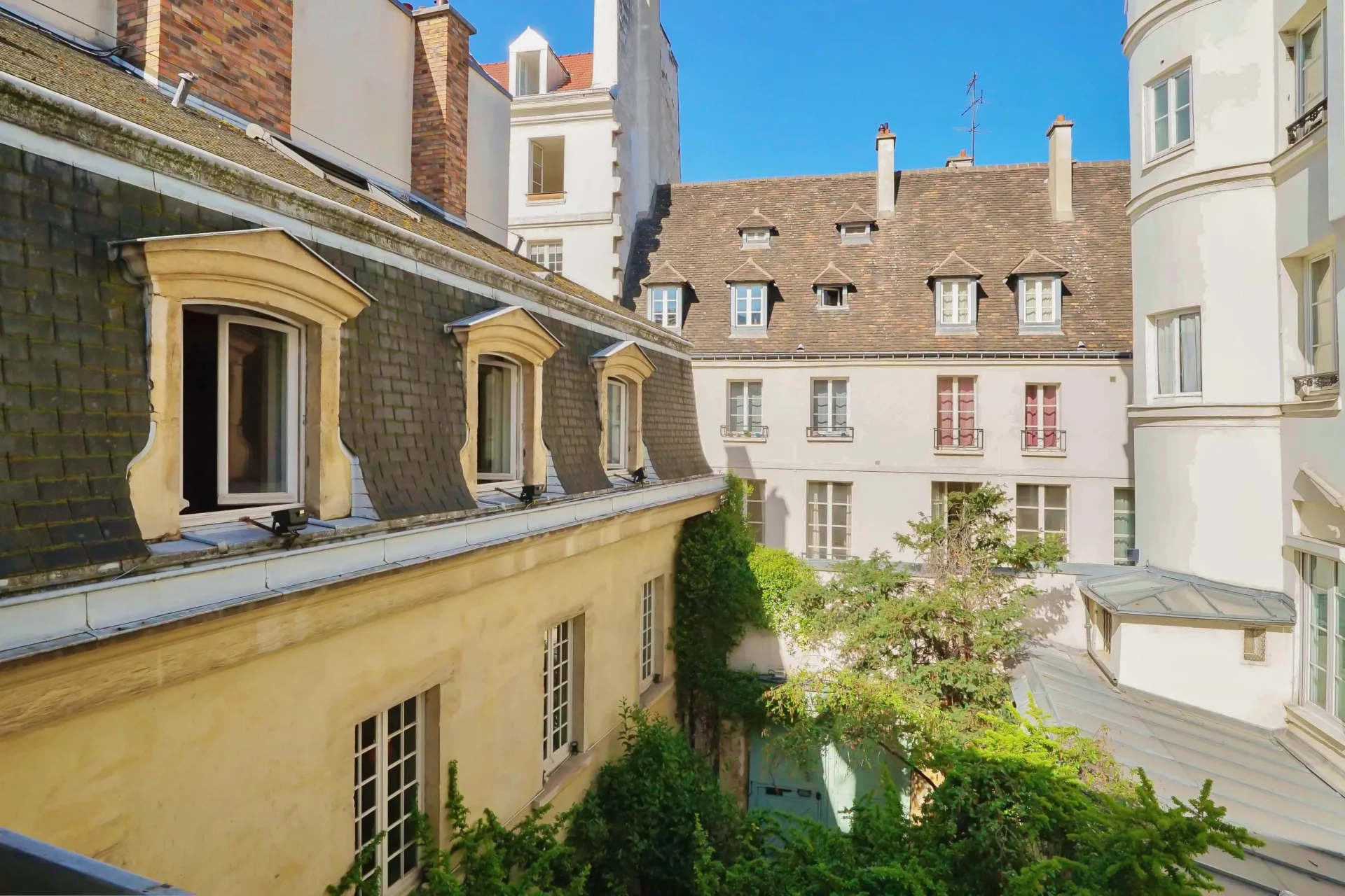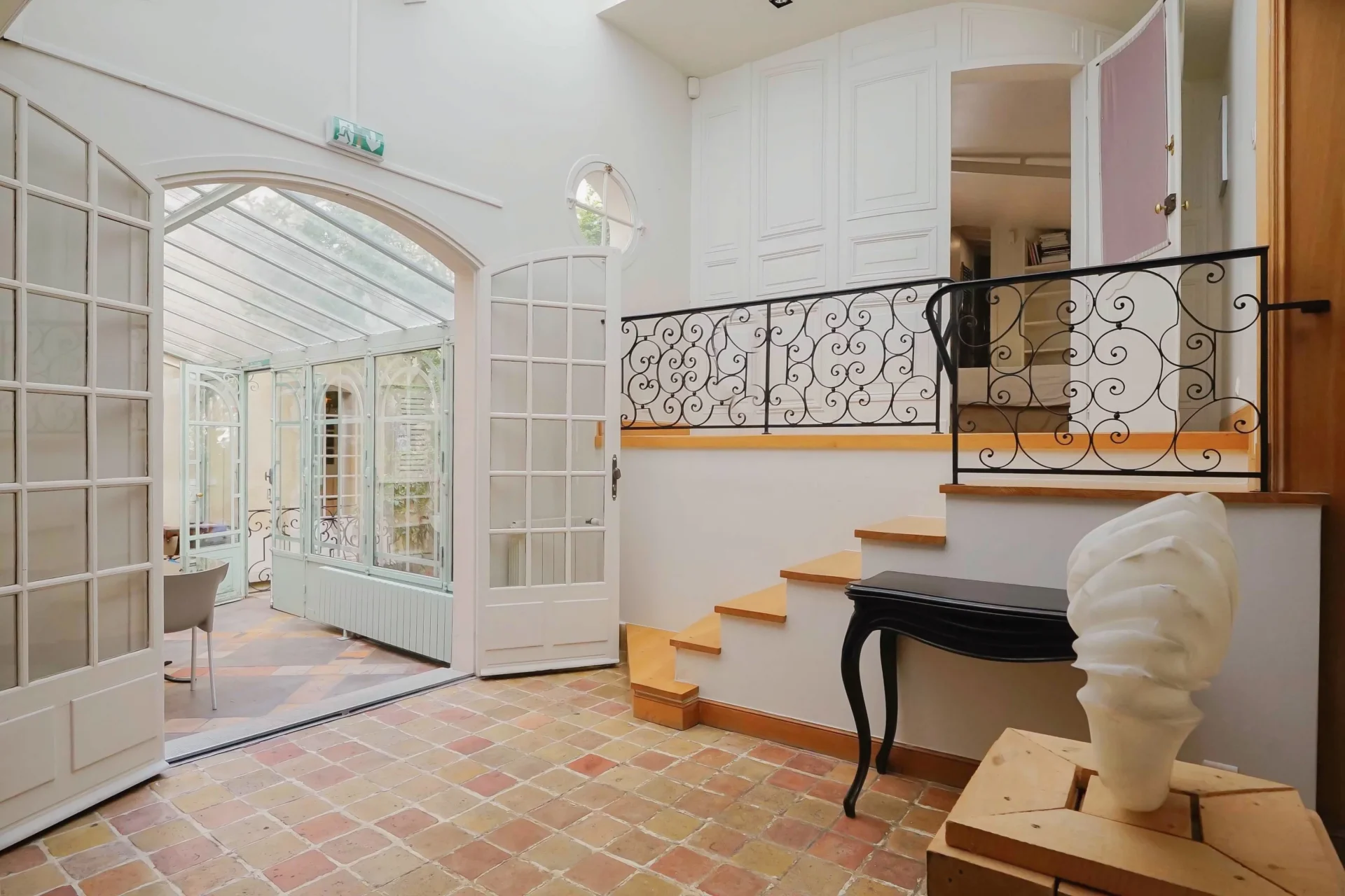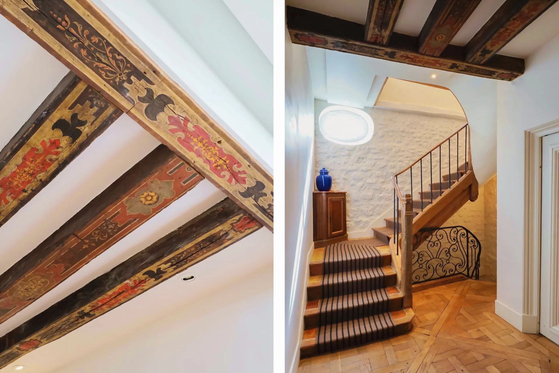 Au fond d’une impasse discrète, à deux pas de la Place des Vosges, se dévoile une propriété privée d’une rareté absolue, dissimulée derrière une porte cochère d’origine.