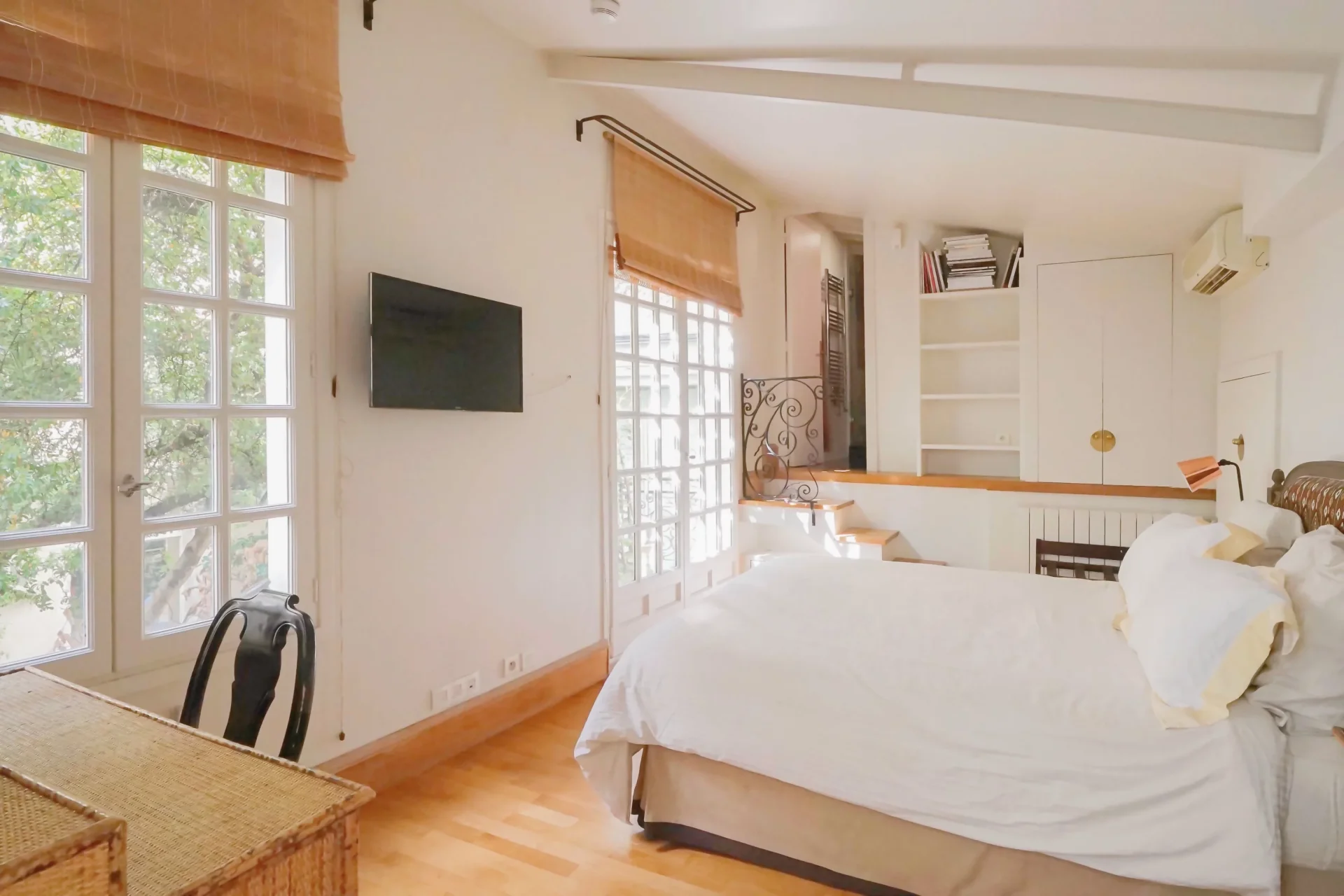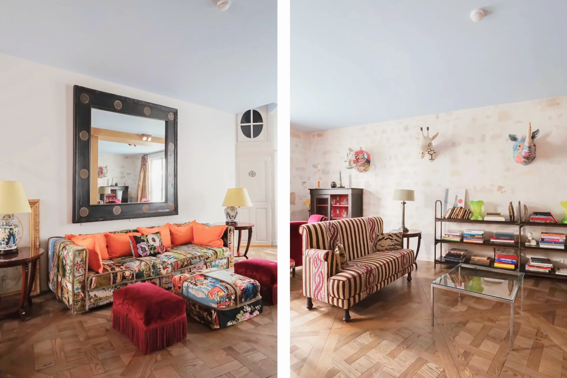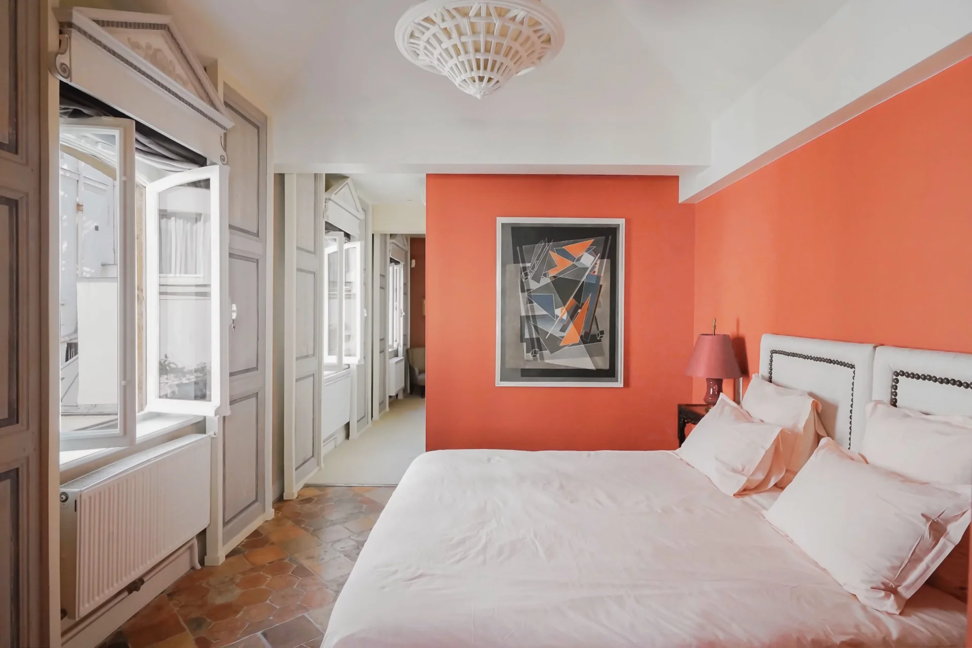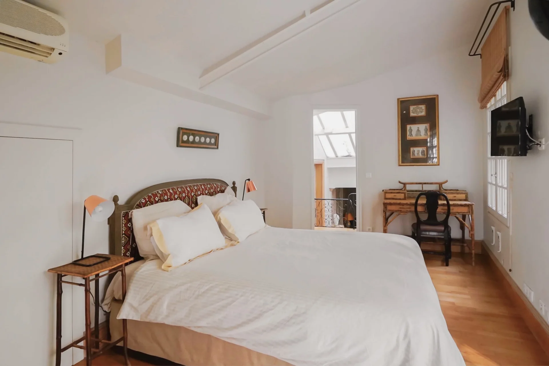 Au fond d’une impasse discrète, à deux pas de la Place des Vosges, se dévoile une propriété privée d’une rareté absolue, dissimulée derrière une porte cochère d’origine.