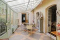Organisée autour d’une cour pavée arborée, la demeure développe environ 600m² sur cinq niveaux desservis par un ascenseur, comprenant deux étages, un rez-de-chaussée et deux niveaux de sous-sol.
