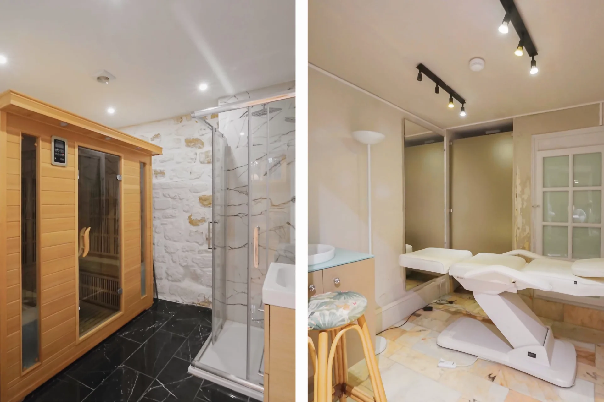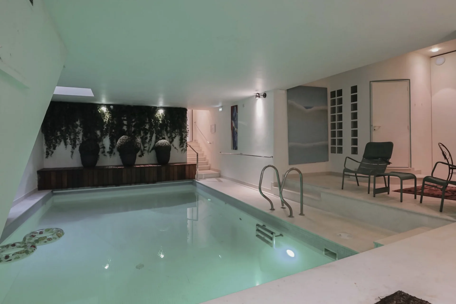 Les espaces de réception s’ouvrent naturellement sur la cour, dans un calme absolu, sans vis-à-vis. Une piscine intérieure, une salle de sport et des espaces de détente.
