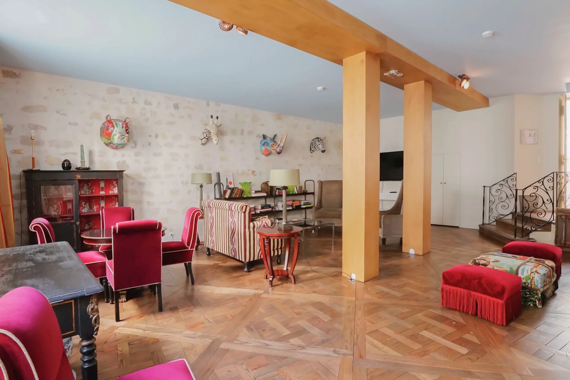 L’ensemble dégage un charme exceptionnel, fruit d’un travail de recomposition unique à partir de matériaux anciens chinés à travers toute la France. Parquets, poutres, pierres et éléments architecturaux confèrent à chaque espace une identité singulière.