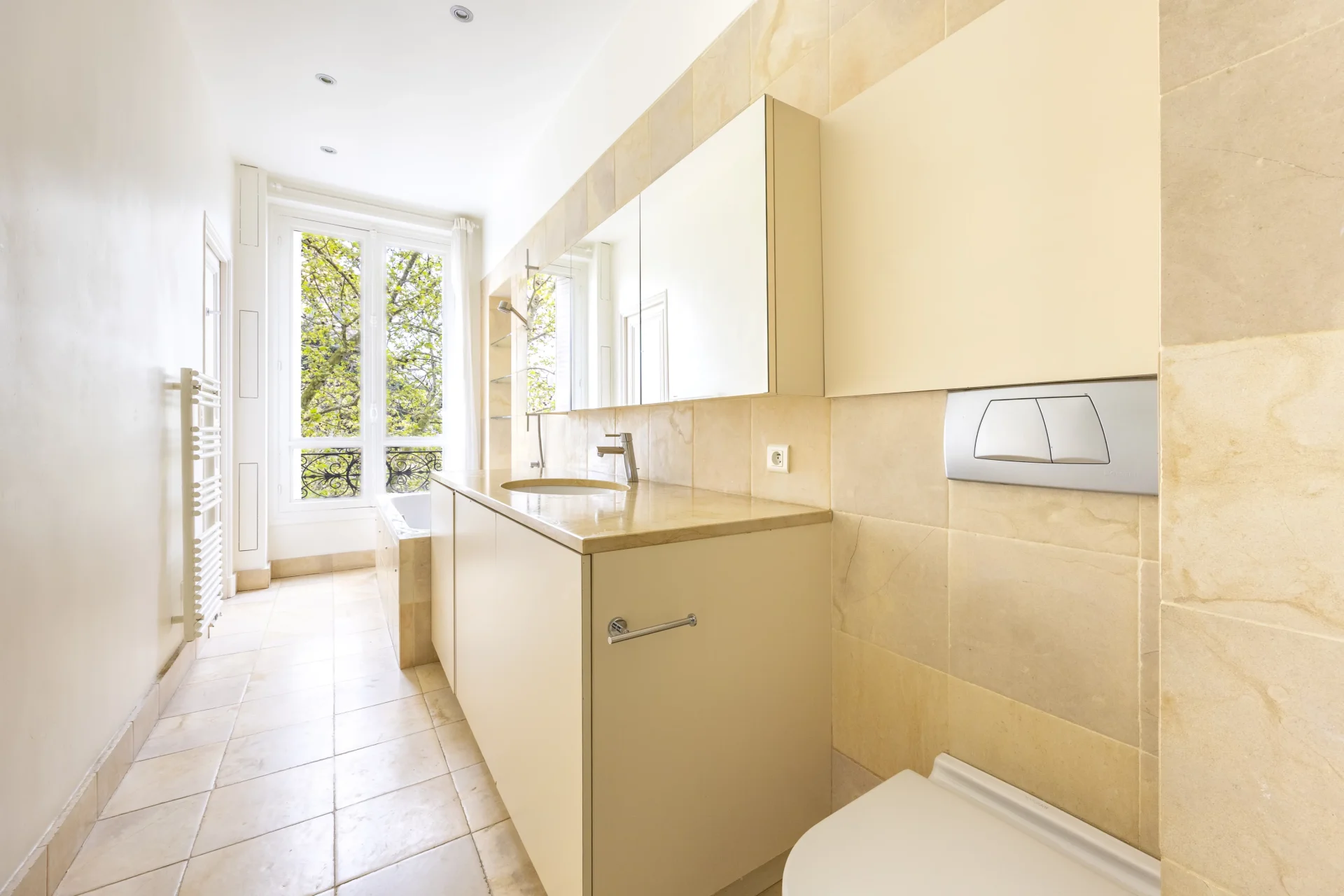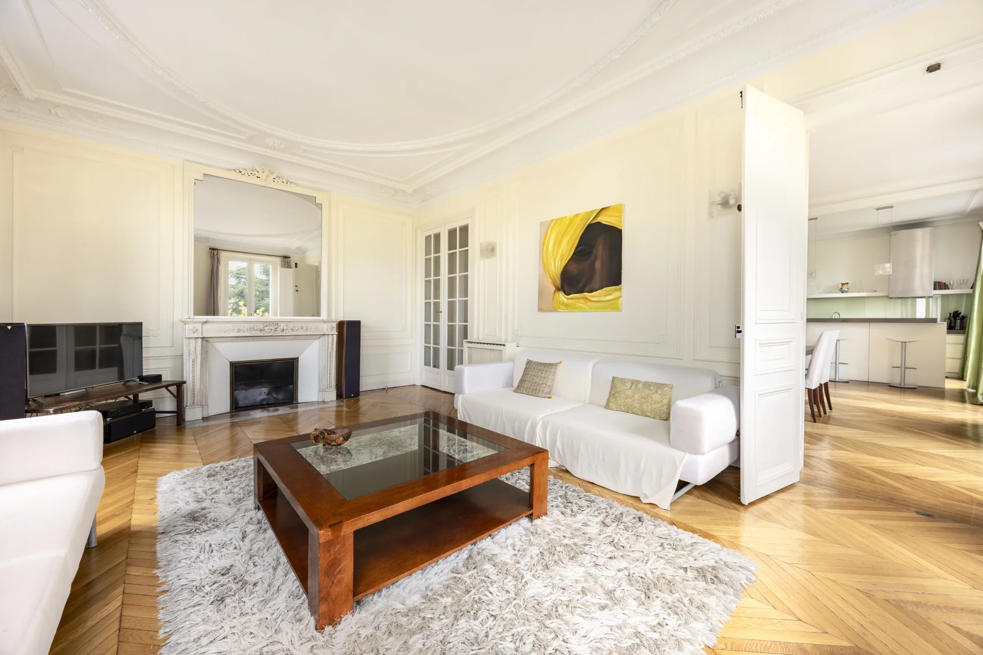 Cet appartement présente tout le charme de l'ancien : moulures, parquet en point de Hongrie, cheminées, belle hauteur sous plafond, et rénové avec de nobles matériaux.