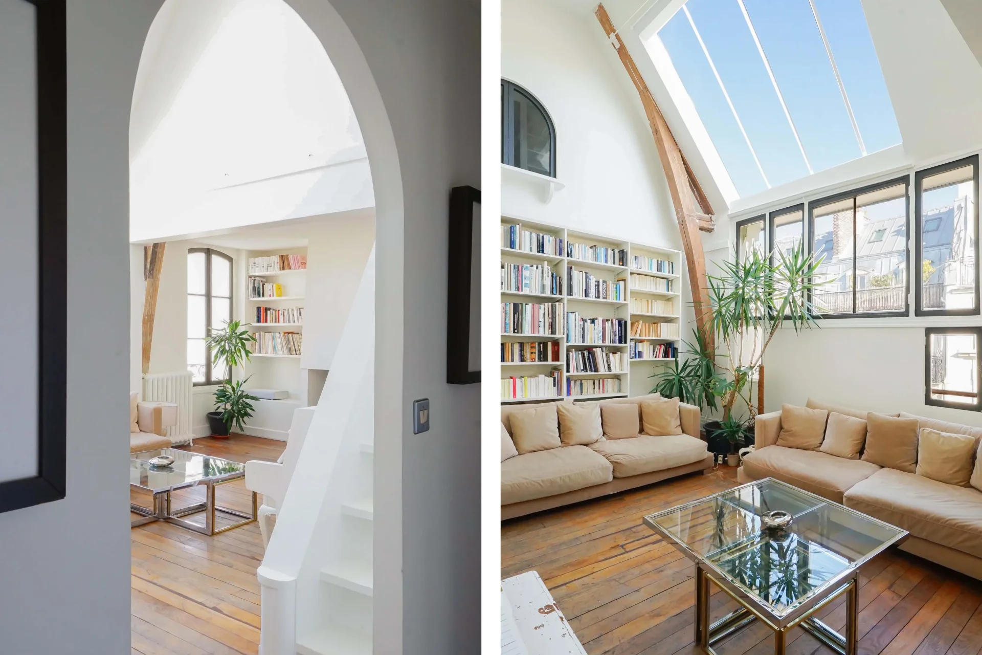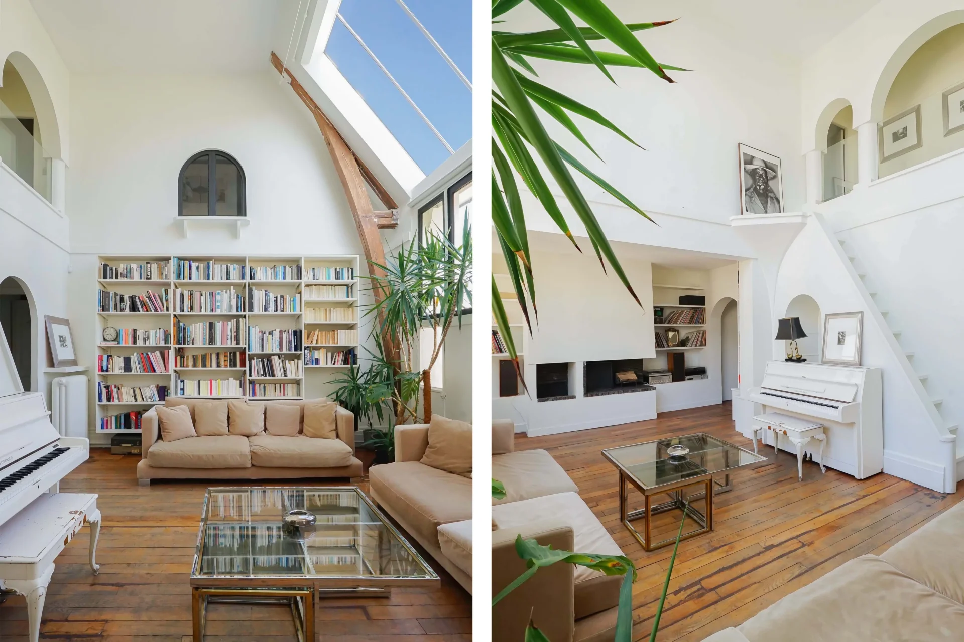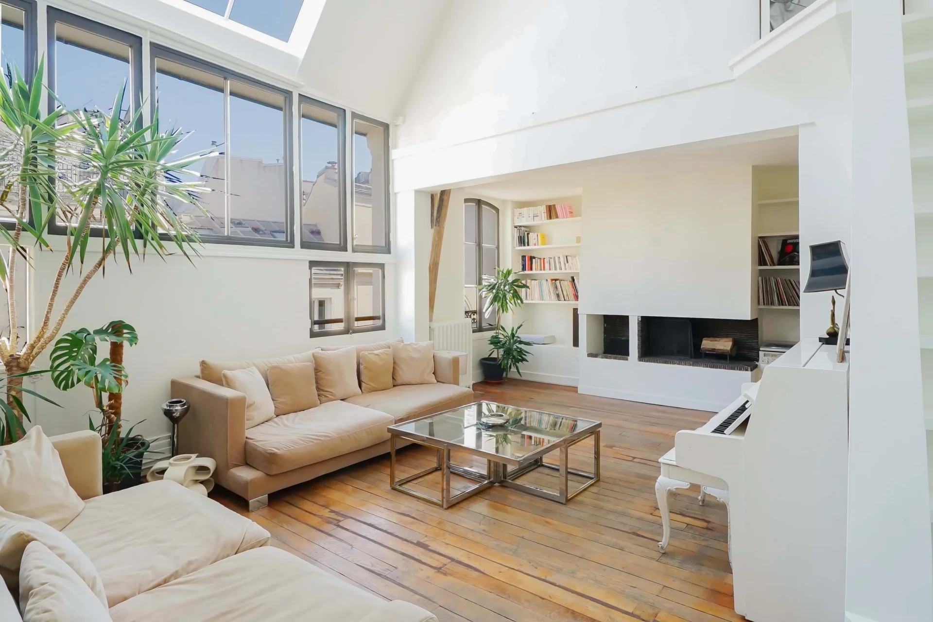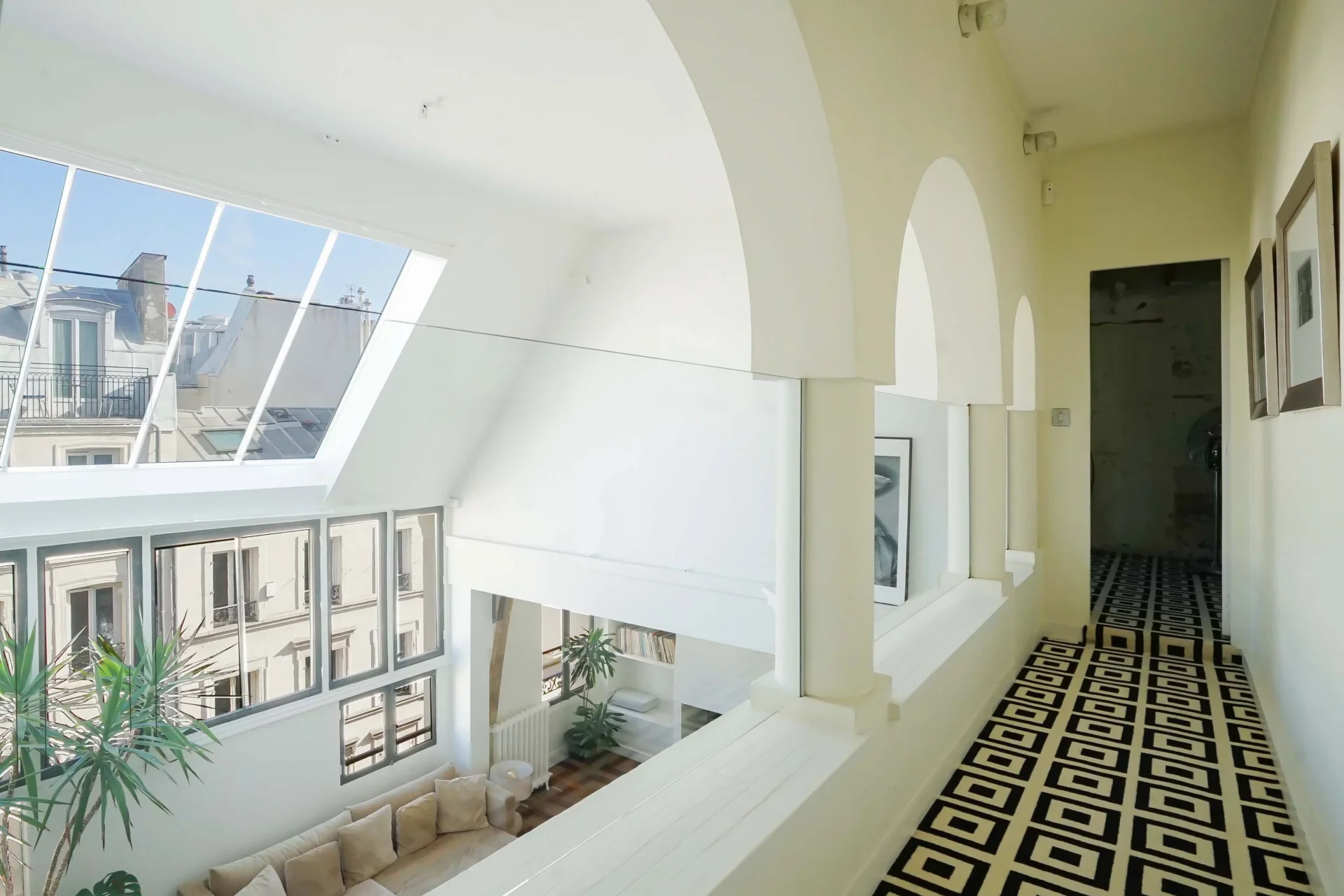 A proximité immédiate des rues Frochot et Douai, aux 2 derniers étages d'un immeuble fraichement ravalé, magnifique atelier d'artiste de 145m² LC (158m² au sol).