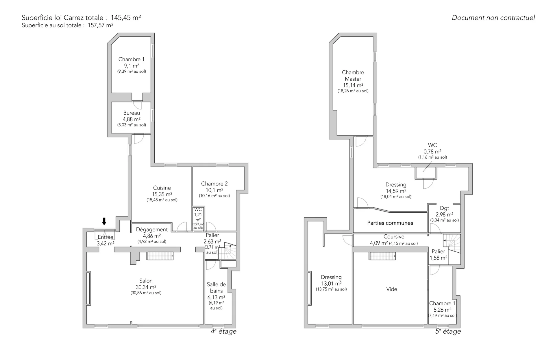| 1x Dressing | 14.59 m² | Étage : 4ème |