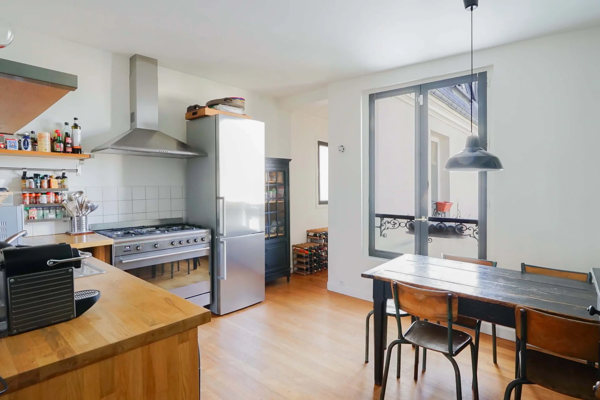 Le 4ème étage se compose d'une entrée, d'une réception avec cheminée profitant d'un incroyable volume et d'une verrière toute hauteur, d'une cuisine dinatoire donnant sur jardin, d'une chambre avec salle de bains, d'un studio de musique (ou chambre) et d'un wc invités. Le 5ème et dernier étage offre une chambre parentale avec salle de bains et vue sur la Tour Eiffel, grands dressings un bureau et un wc séparés. En annexe, une cave.