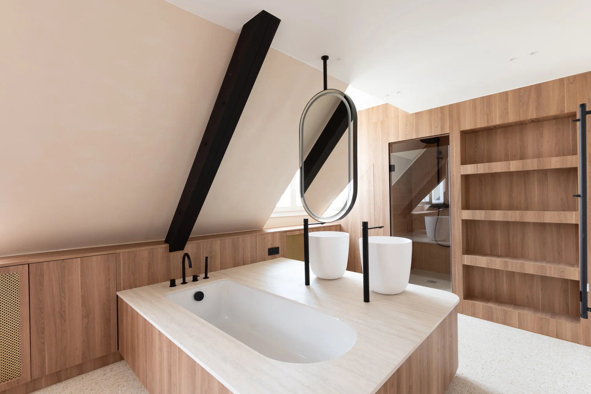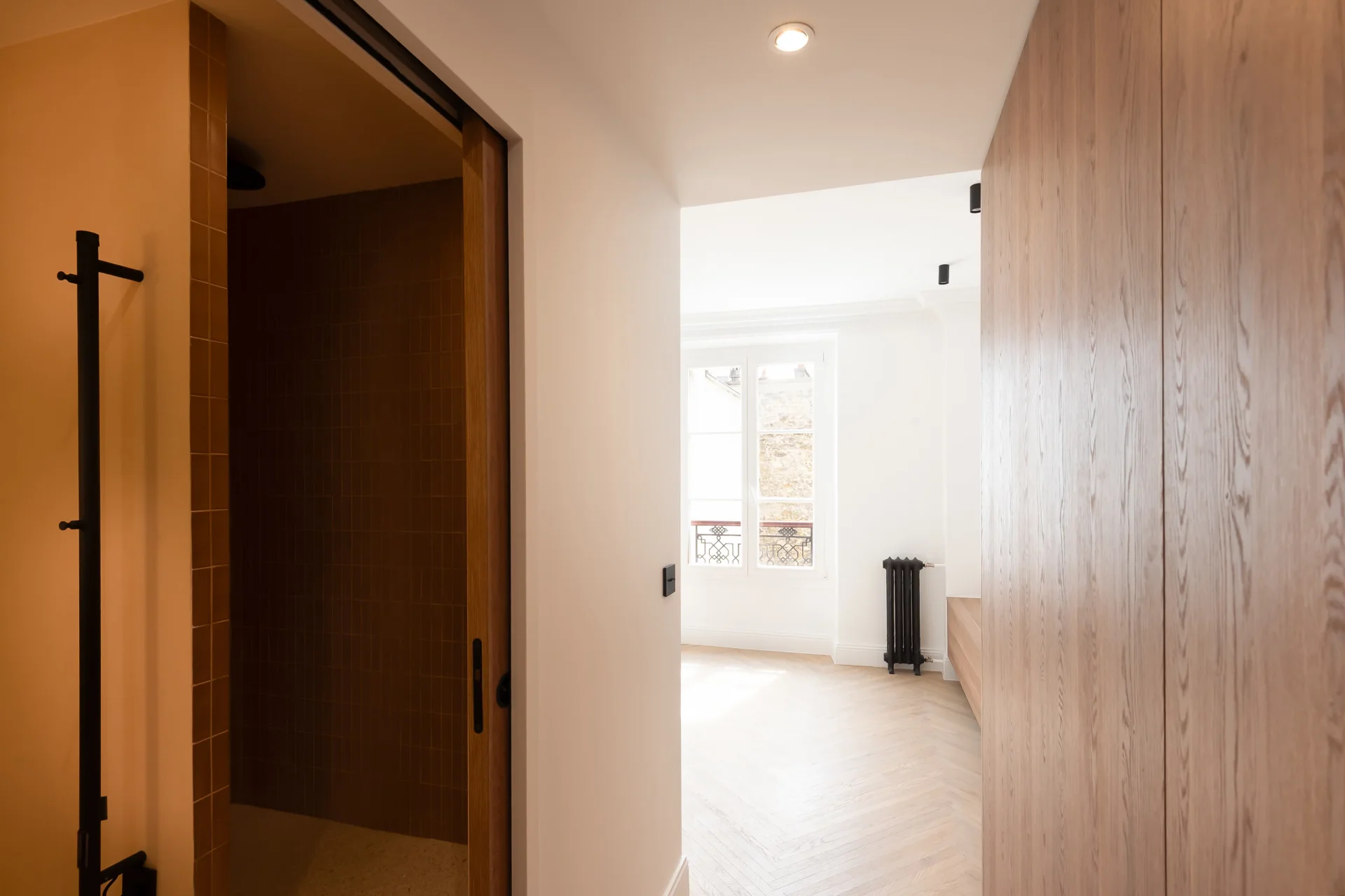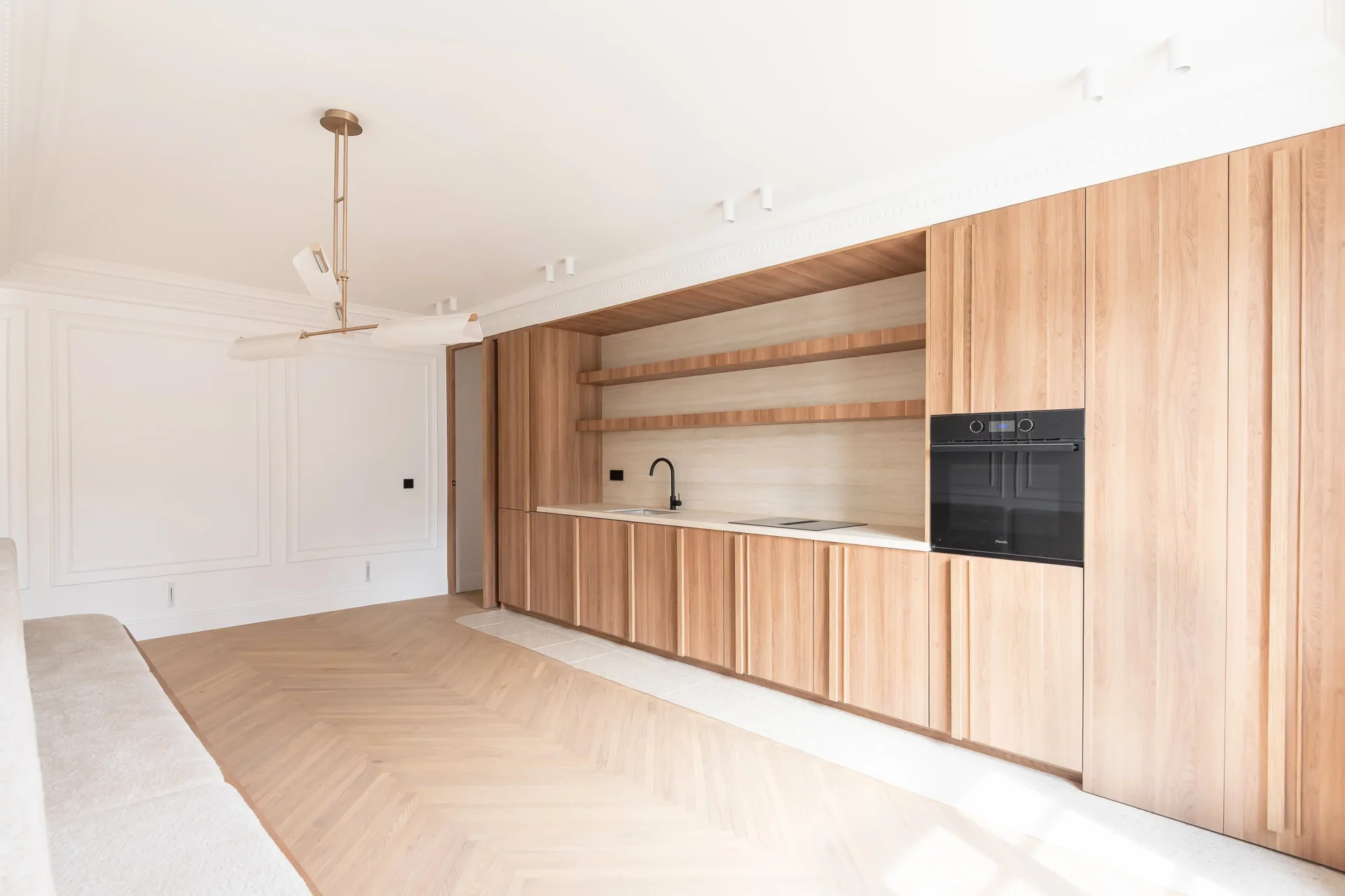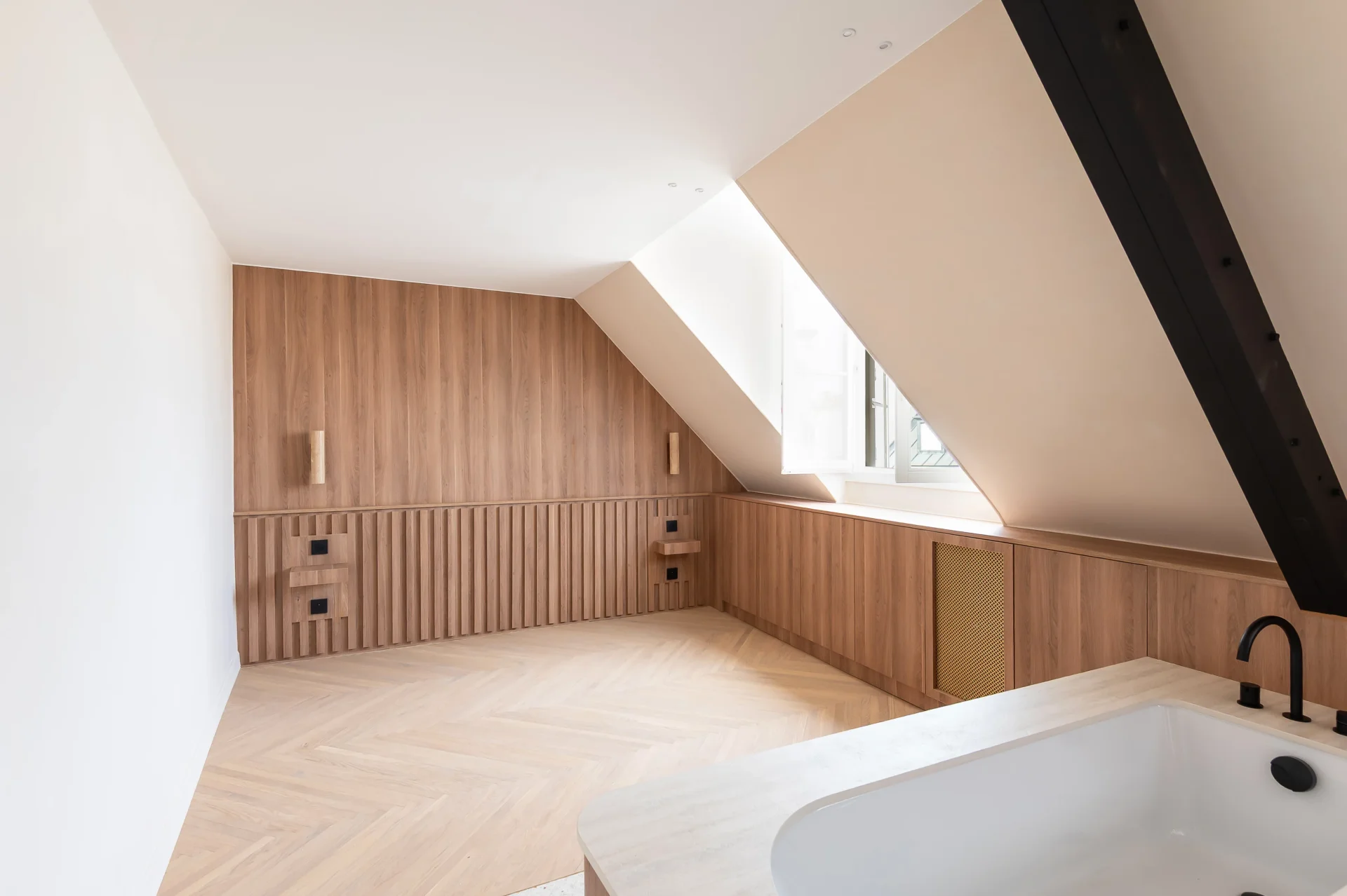 Rare. Au sixième et dernier étage par ascenseur d’un bel immeuble ancien avec gardienne à demeure, magnifique appartement de 81,65m² loi Carrez refait à neuf avec goût et matériaux haut de gamme.